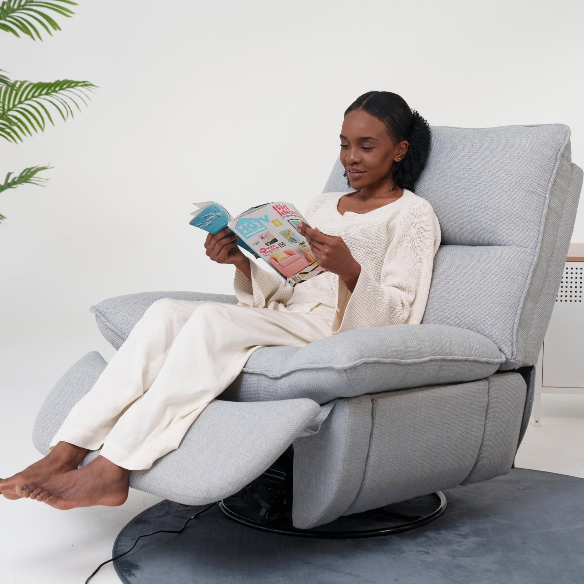 Sokoldalú, manuális pihenőfotel – extra széles, dönthető, forgatható, ringatható és rejtett tárolóval