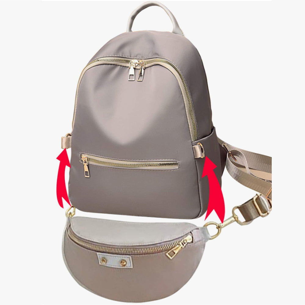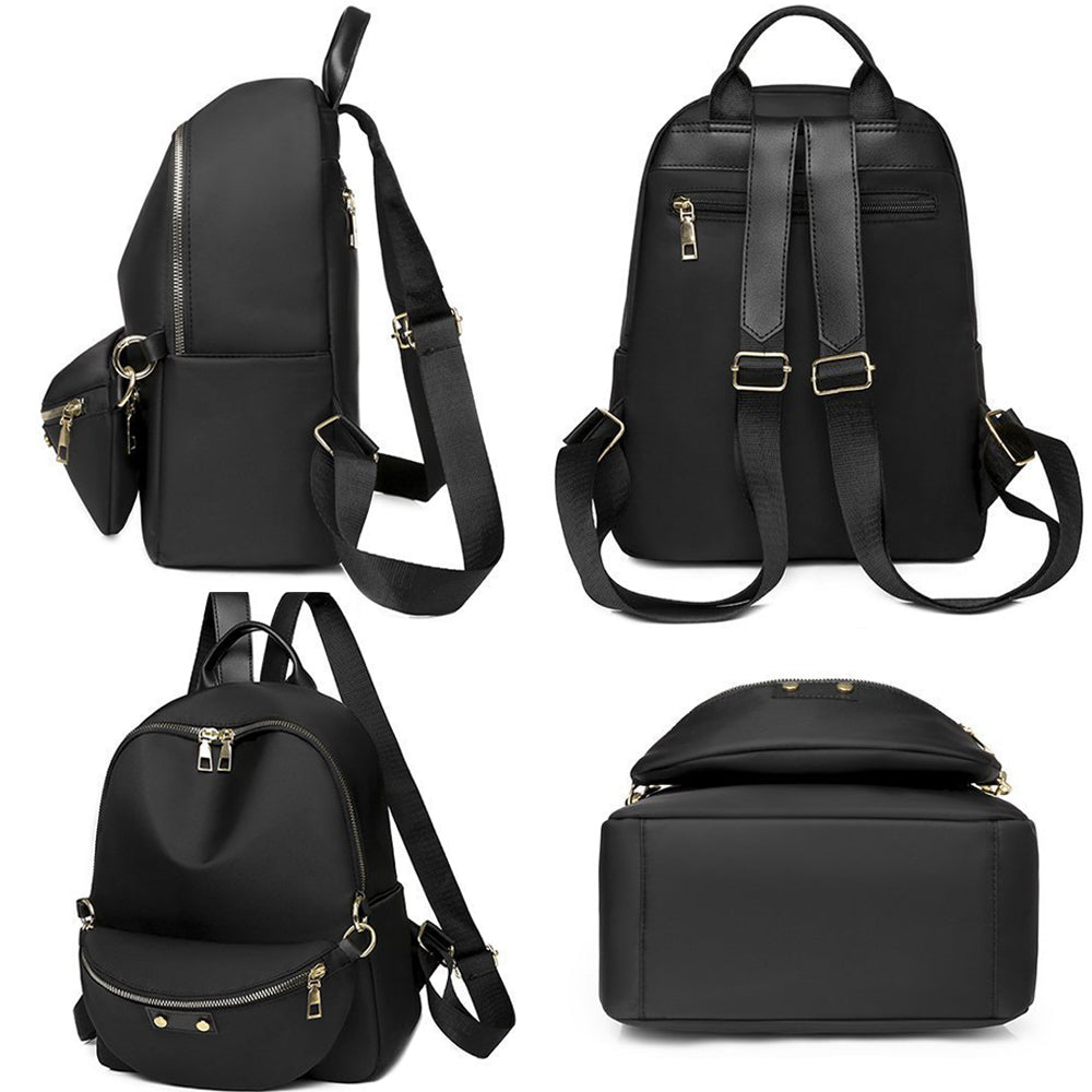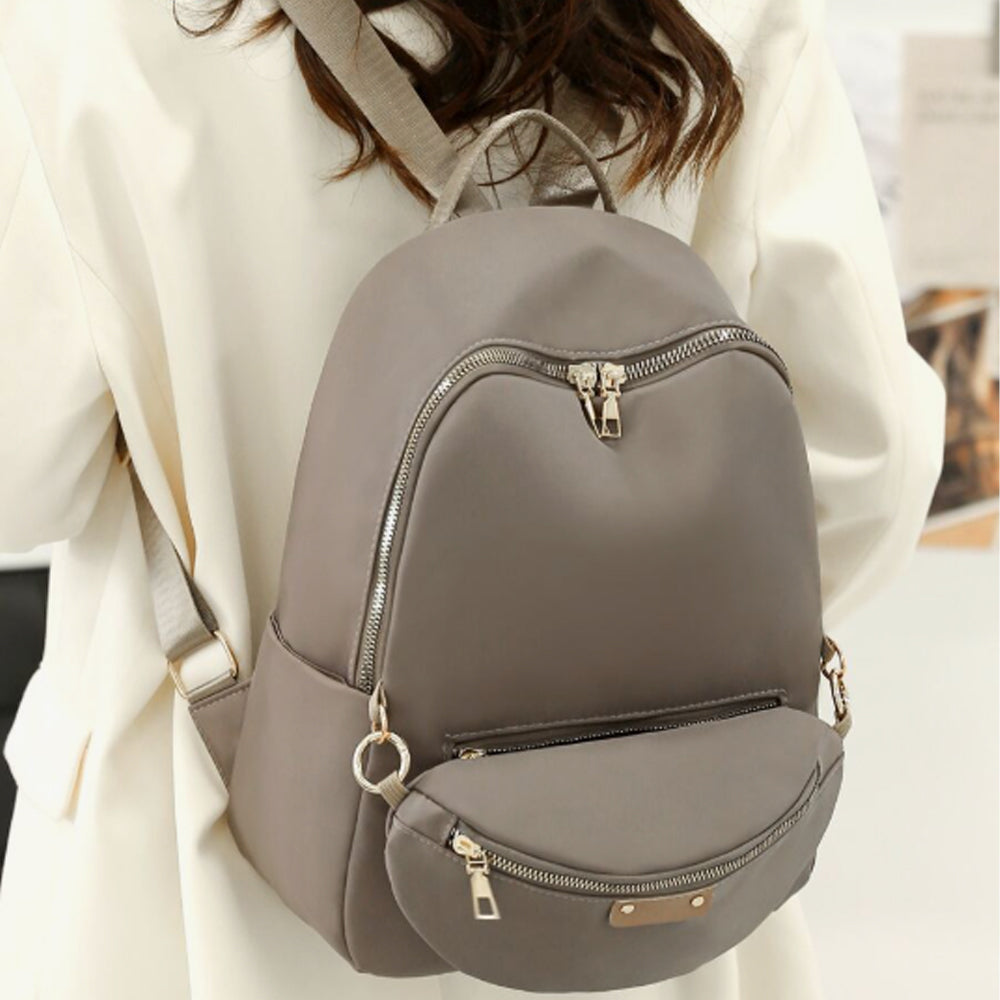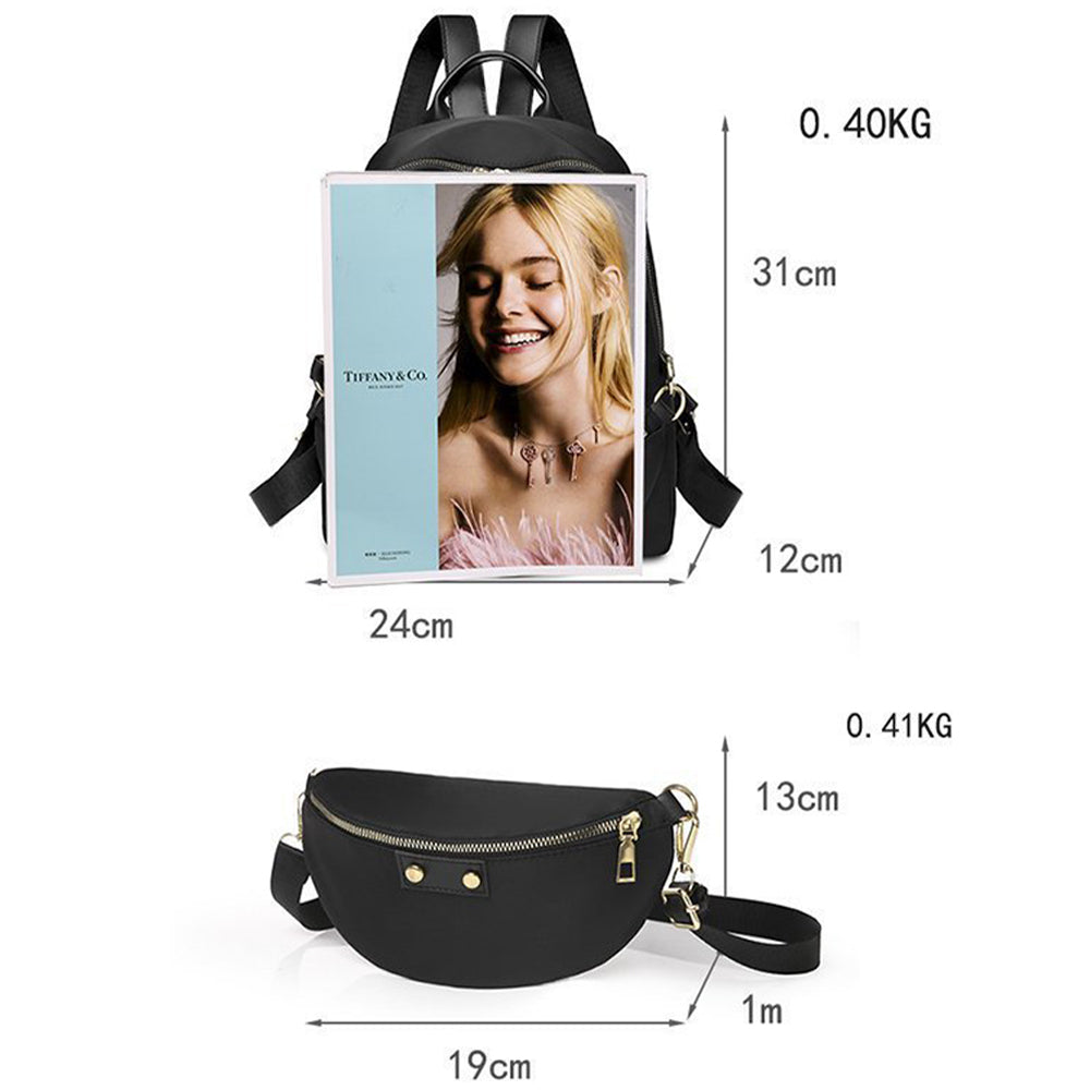 Tartós és puha nylon hátizsák: Ez a női hátizsák és pénztárca szett kiváló minőségű, szakadásálló nylonból készült, karcálló fém cipzárral. A precíz kidolgozás és strapabíró anyagok biztosítják a hosszú élettartamot, miközben a divatos kialakítás elegáns megjelenést kölcsönöz.