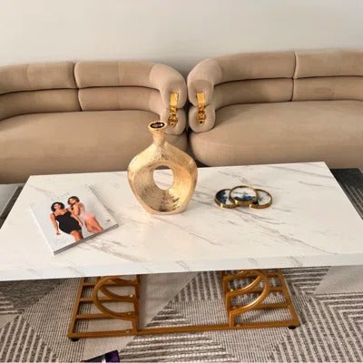 Dollcini Otthon Márvány Hatású Dohányzóasztal Egyedi Arany Lábbal