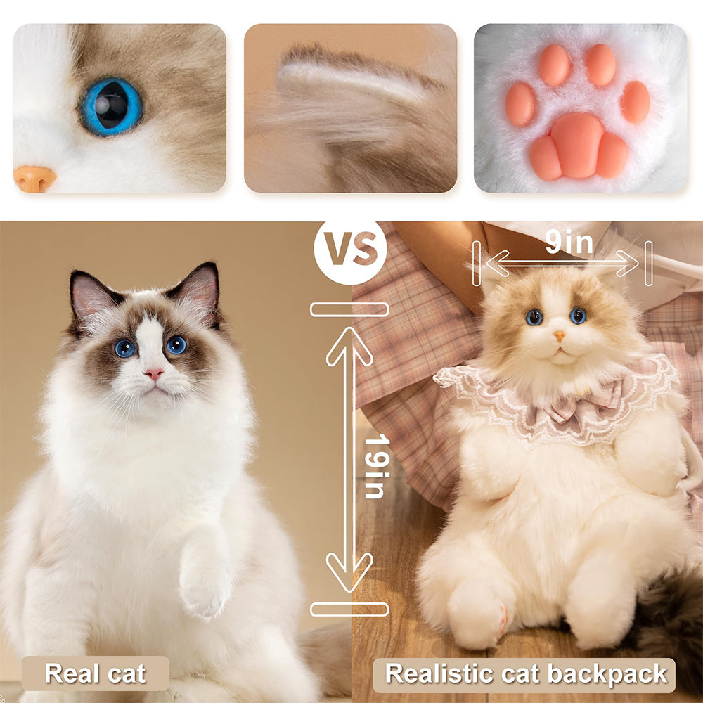 Ez a valósághű plüss cica hátizsák nemcsak praktikus kiegészítő, hanem igazi élményt is nyújt!