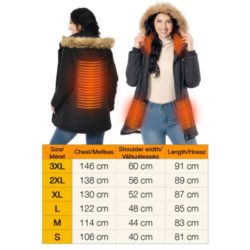 Dollcini Női Fűthető Kabát – Vízálló, Kapucnis, 9 Fűtőelemmel [A powerbankot külön kell megvásárolni]