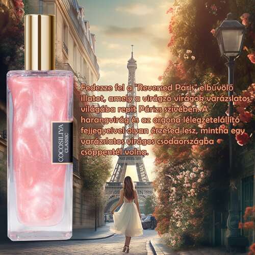 Képzelje el, hogy egy virágos álomvilágban sétál Párizs szívében. A harangvirág és az orgona lélegzetelállító nyitánya elrepít egy csodaországba, ahol minden pillanat tavaszi románccal van átitatva. Nőies, játékos és frissítő, tökéletes választás nappali viselésre vagy különleges alkalmakra.