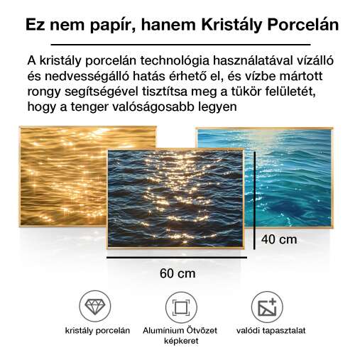 A 3D tenger festmény egy különleges dinamikus dekoráció, amely tökéletes választás otthoni vagy irodai környezetbe. Az üvegkeretes homokfestmény egyedi látványt nyújt, miközben a folyamatosan mozgó homok pihentető és nyugtató hatással bír. Az elegáns üvegkeretes fali művészet modern kiegészítője lehet bármely enteriőrnek.