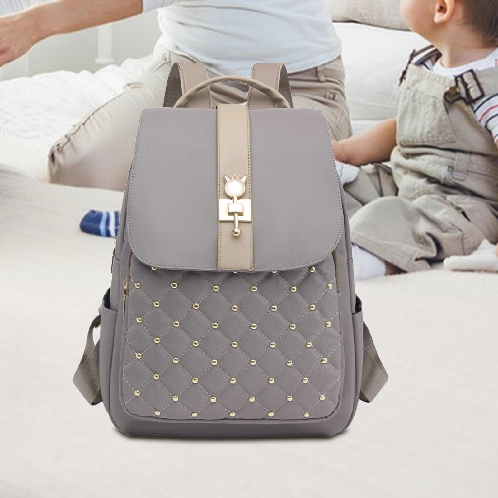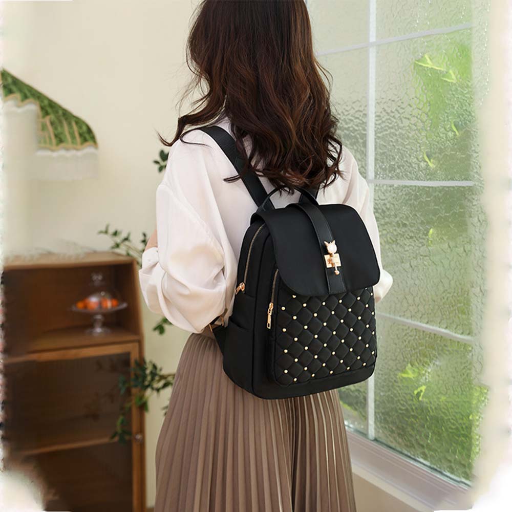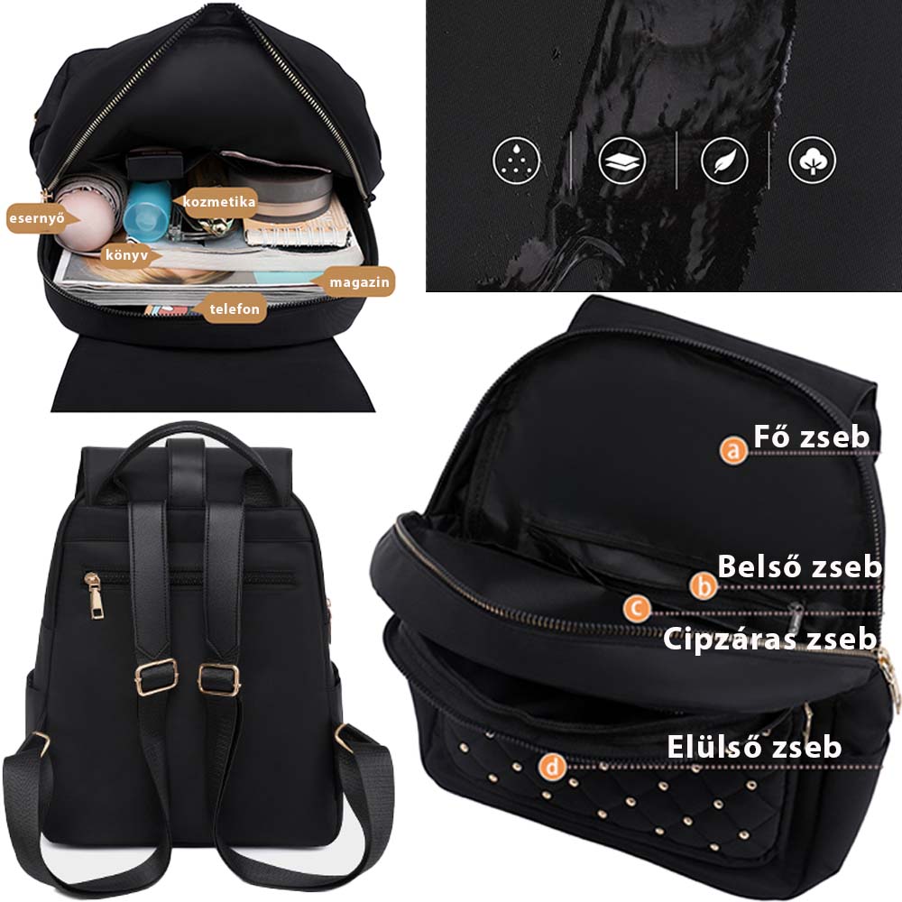 Dollcini Lopásgátló Nylon Hátizsák – Nagy Kapacitású Campus Hátizsák, Arany díszítéssel