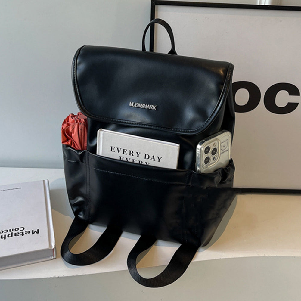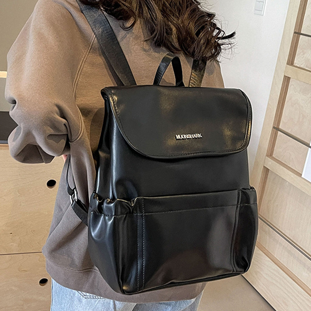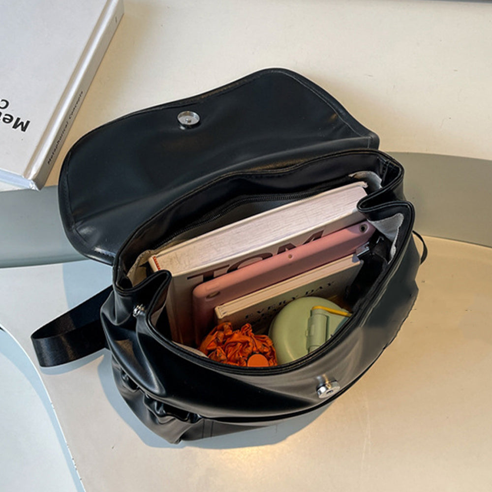 Dollcini Bright Black női hátizsák - divatos PU bőr, nagy kapacitású, alkalmas iskolába, munkába és utazáshoz
