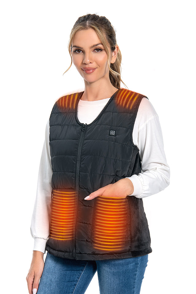 Dollcini Fűthető Női Mellény – 9 Zónás, USB Töltéssel, Fekete [A powerbankot külön kell megvásárolni]