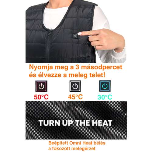 - Gyors és hosszantartó meleg: Másodpercek alatt felmelegszik 7,4 V cUL/UL tanúsítvánnyal rendelkező akkumulátorral. 10000 mAh-s power bankkal 8-10 órányi meleget biztosít (élettartam a power bank típusától függ).