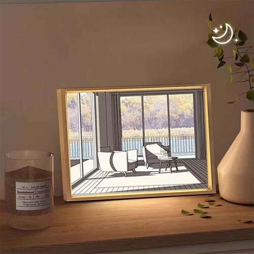 Dollcini Otthon LED Világító Falikép – USB-s, Fa Keretes Dekor