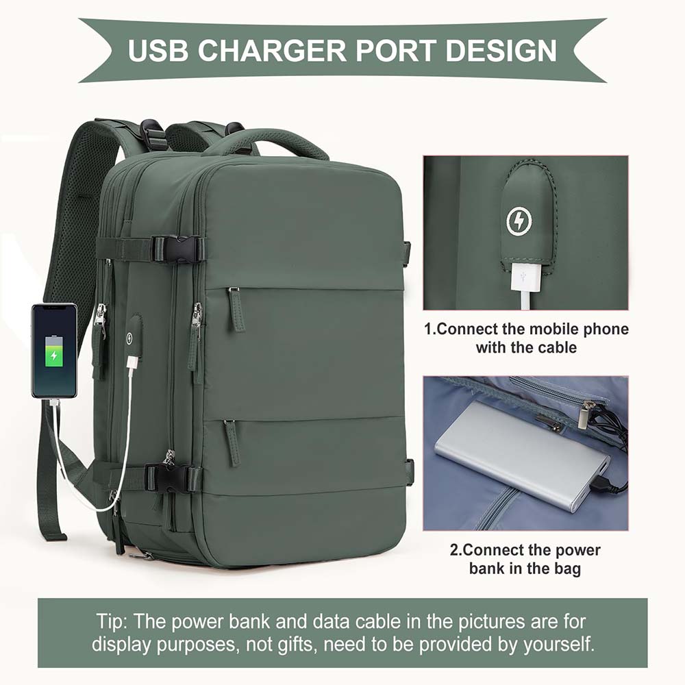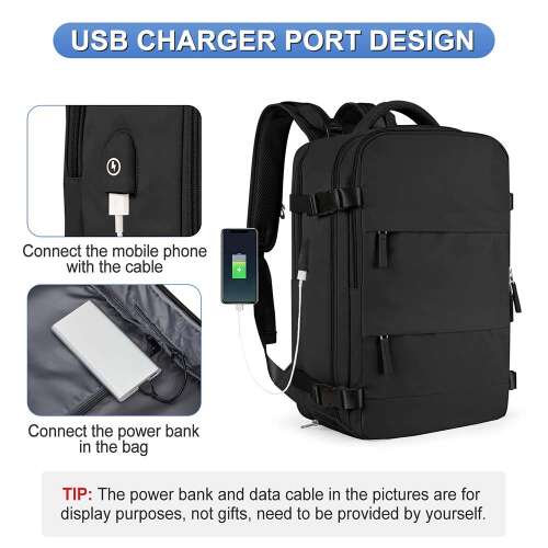 - USB töltőport: A hátizsák USB töltőporttal rendelkezik, amely csatlakoztatható a táskán belüli mobil tápegységhez, és adatkábellel csatlakoztatható a táskán kívüli mobiltelefonhoz. Ez lehetővé teszi, hogy séta közben töltse mobiltelefonját vagy iPadjét. (Megjegyzés: a hátizsák nem tartalmaz powerbankot vagy adatkábelt.)