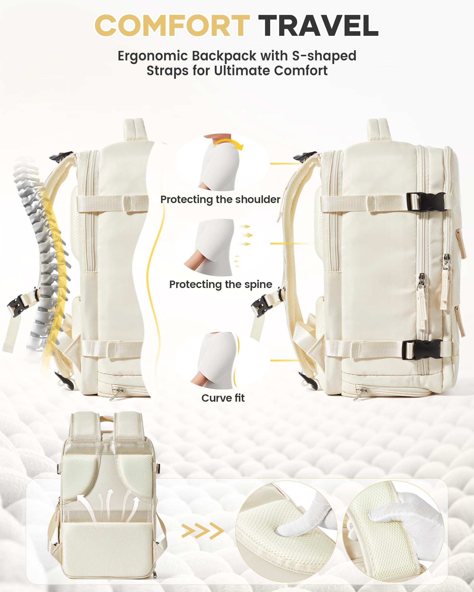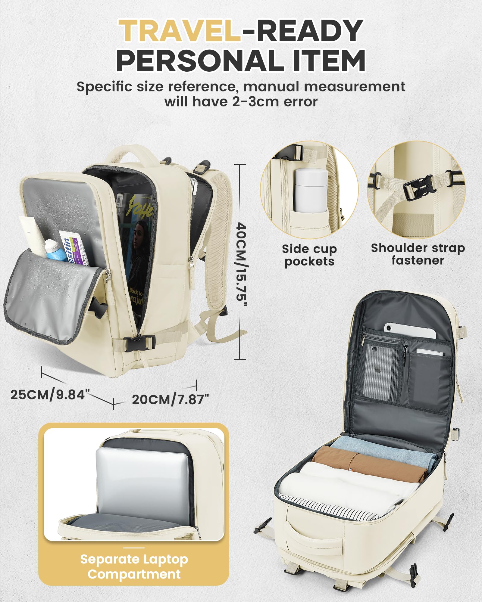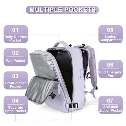 - Nagy kapacitású, többfunkciós kialakítás: A napi ruhazseb 4-6 darab vékony felsőt vagy nadrágot tud elhelyezni, ami 2-3 napig kielégíti a rövid utazások vagy üzleti utak igényeit. Alkalmas főiskolai írószerek, például magazinok tárolására is, valamint külön laptoptartó rekesz 15,6 hüvelykes laptopok számára.