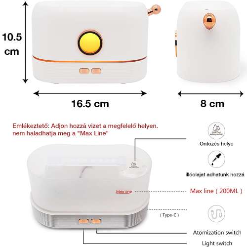 Ez az illatdiffúzor kiváló minőségű PP anyagból készült, modern kialakításával és intelligens LED-fényekkel valósághű lánghatást kelt. A kellemes légkört megteremtve segíti a pihenést, a relaxációt és az otthoni kikapcsolódást.