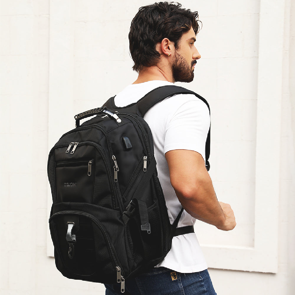 Dollcini Uniszex Laptop Hátizsák – Vízálló Utazóhátizsák, USB Töltőporttal, Fekete