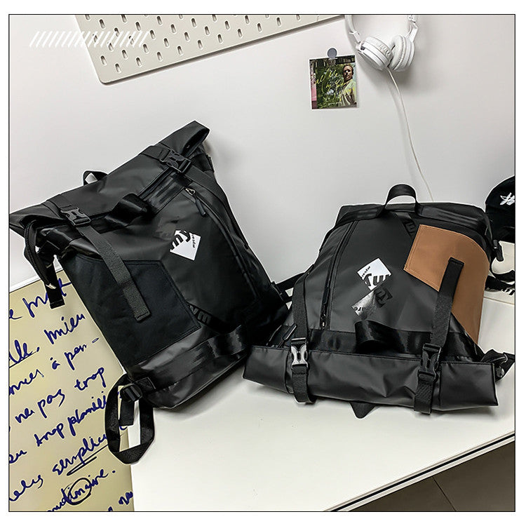 A Dollcini roll-top laptop hátizsák egy stílusos, funkcionális és tartós választás mindennapi használatra. Ideális diákok, egyetemisták és utazók számára, akik egy vízálló, nagy kapacitású és ergonomikus táskát keresnek. Modern fekete dizájnja barna vagy teljesen fekete részletekkel sportos és divatos megjelenést kölcsönöz, miközben a strapabíró anyag védi az értékeidet minden körülmények között.