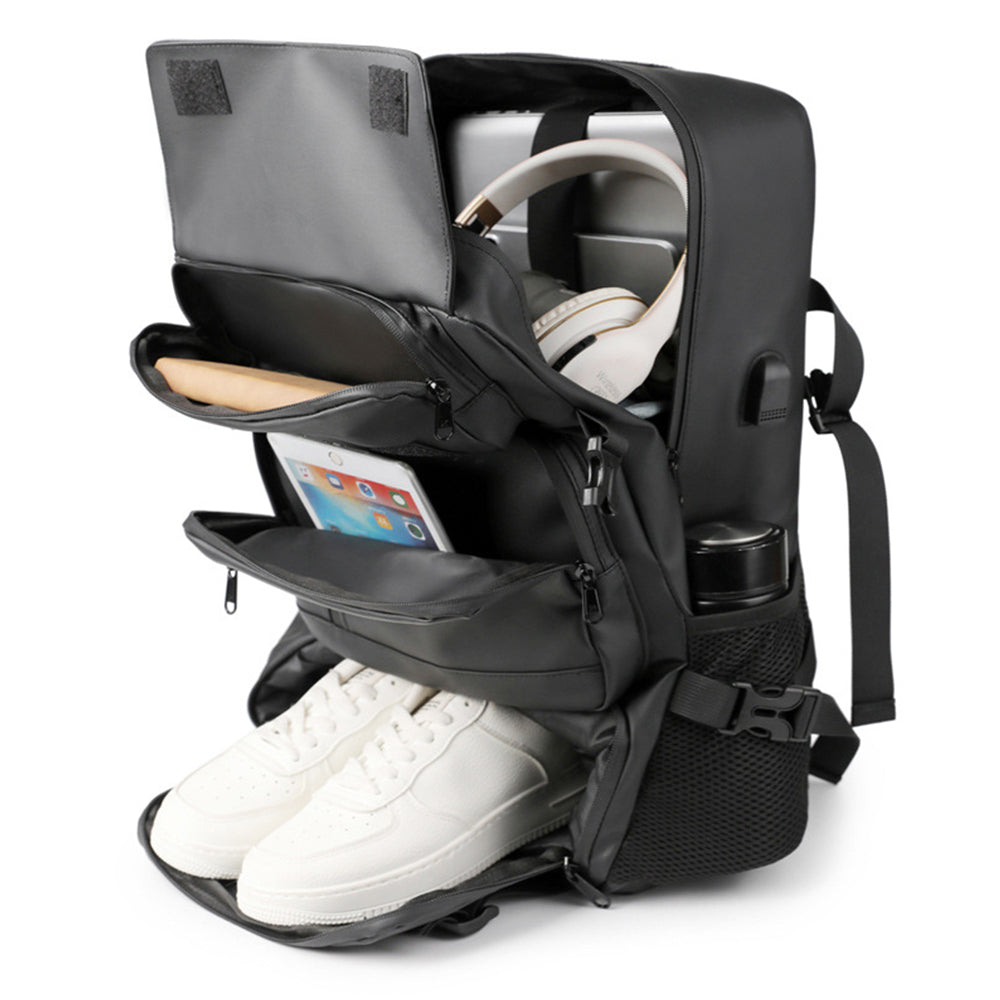 Masszív kialakításával és többrekeszes rendszerezőjével ez a hátizsák a legtöbb funkciót kínálja: külön szellőző cipőrekesz, párnázott 16 hüvelykes laptoptartó rekesz, 3 első zseb, két oldalsó palacktartó és egy külső USB töltőport (a tápegység nem tartozék). Tökéletes utazáshoz, sporthoz vagy kézipoggyásznak egy repülőgépen.