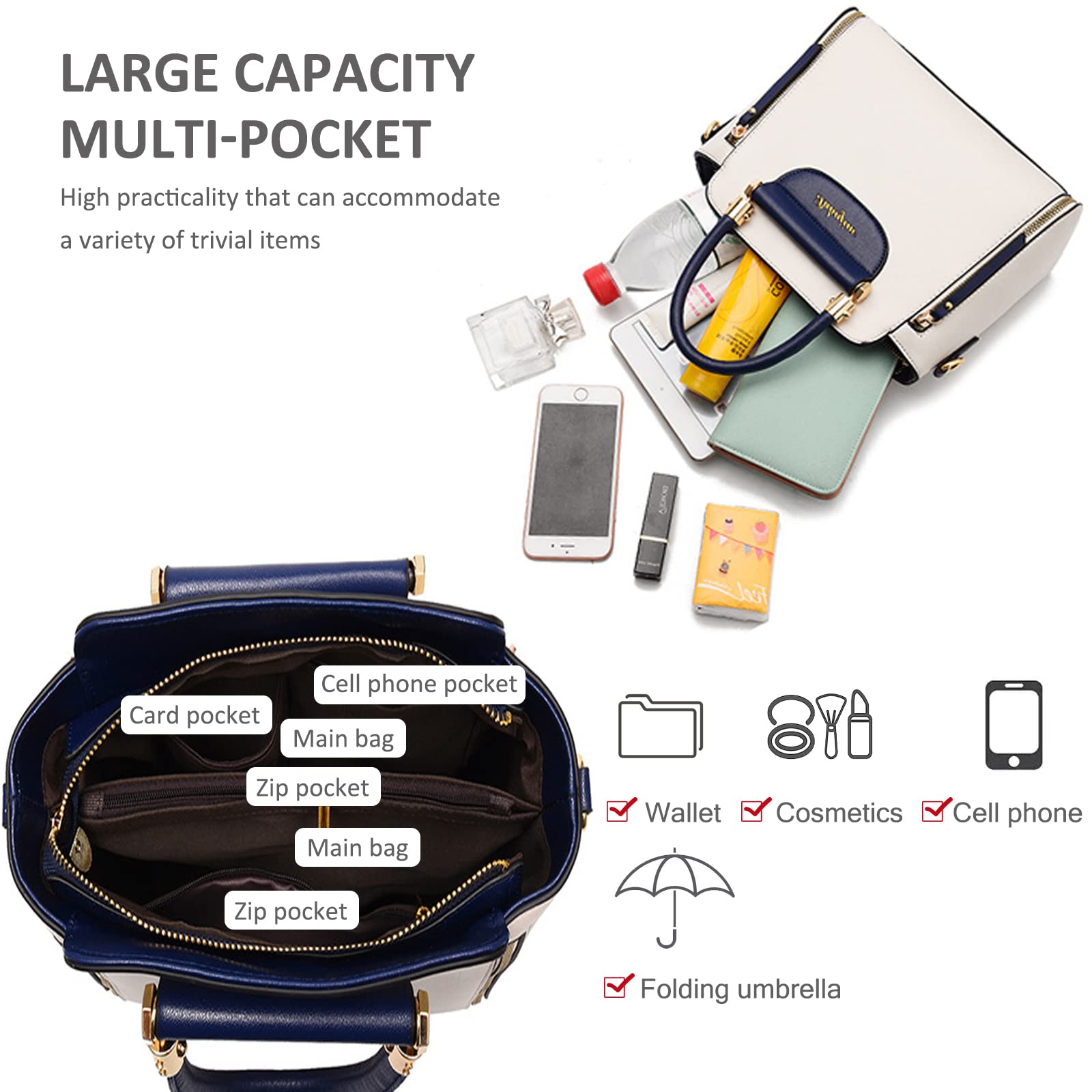 Elegendő hely az összes alapvető tárgy, például mobiltelefon, kulcsok és ajakrúzsok tárolásához és rendszerezéséhez.