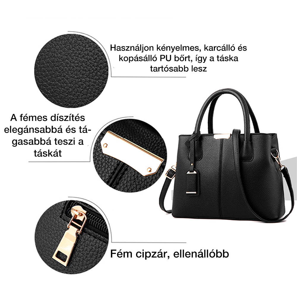 • Levehető vállpánttal, így kézitáskaként vagy futártáskaként is hordható.