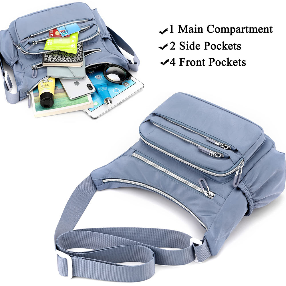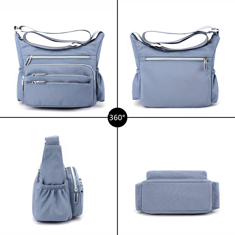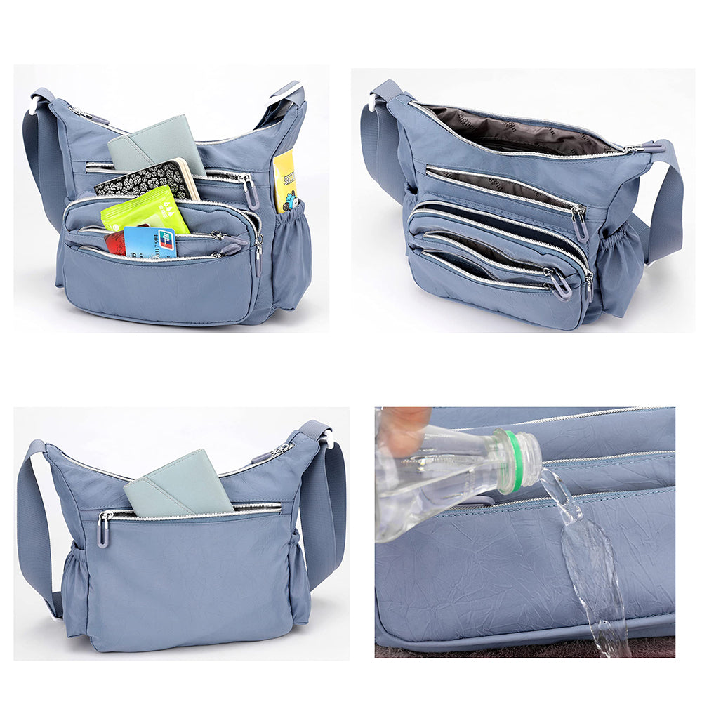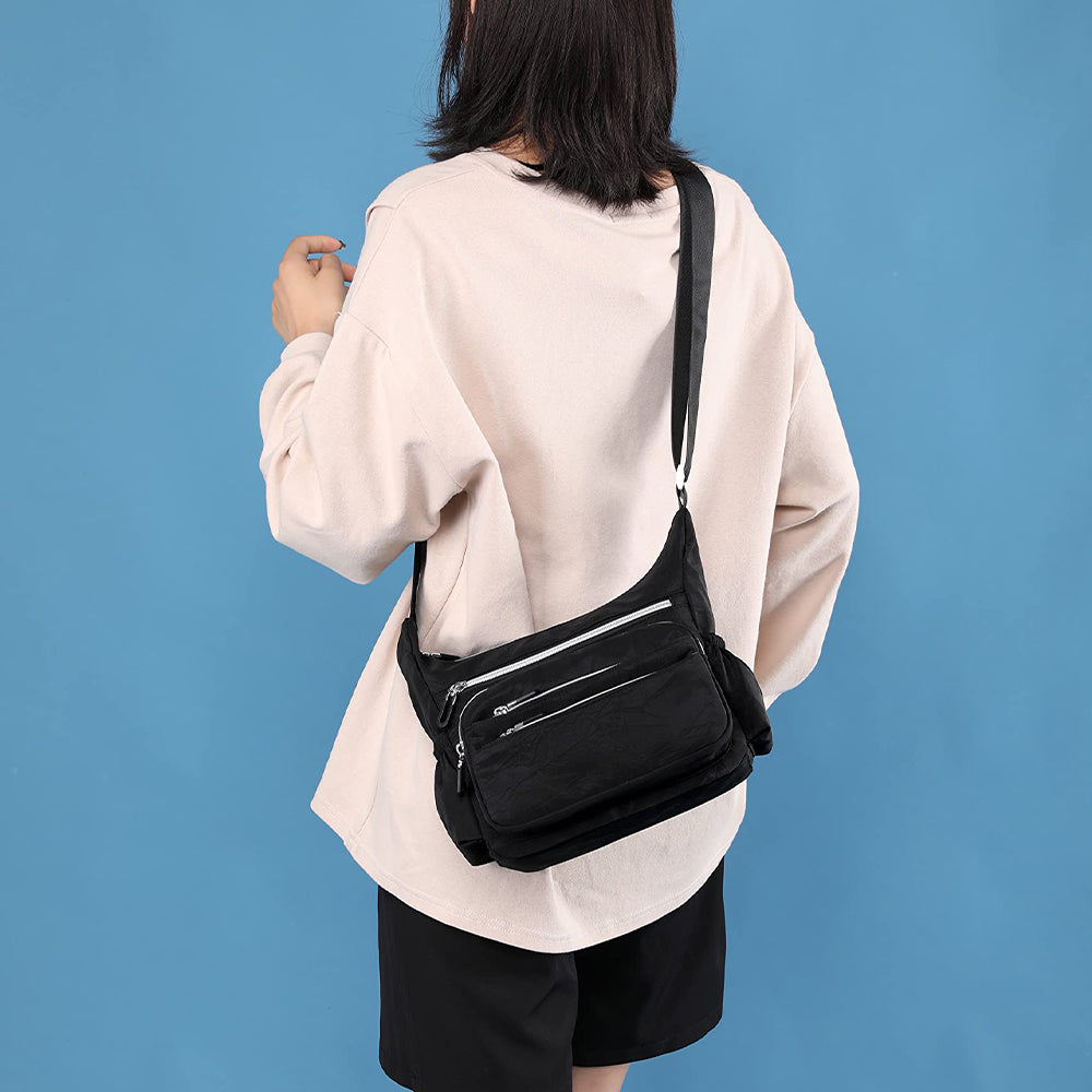 A Dollcini női crossbody hobo táska könnyű, vízálló és rendkívül praktikus választás mindennapi használatra. Prémium nylon anyagból készült, amely strapabíró, foltálló és könnyen tisztítható. Tágas belső tere és több zsebe lehetővé teszi a laptop, pénztárca, telefon és kiegészítők rendszerezett tárolását. Állítható, párnázott vállpántjának köszönhetően kényelmes viseletet biztosít, így ideális munkába, bevásárláshoz, utazáshoz vagy szabadidős programokra is.