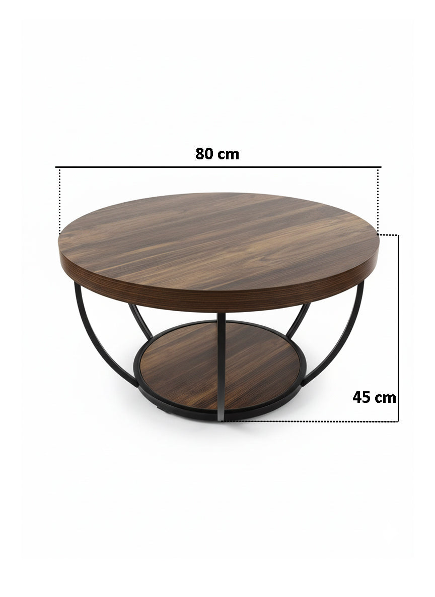 - Kétszintes Kialakítás: A tágas, 80 cm átmérőjű felső lap mellett egy praktikus alsó polc is helyet kapott, amely ideális tárolóhelyet biztosít magazinoknak, könyveknek vagy a távirányítónak.