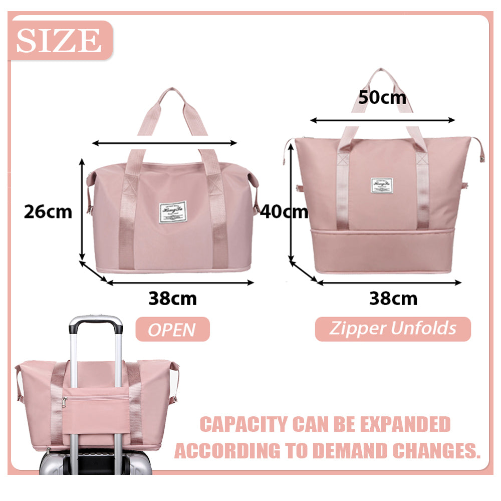 **Dollcini Bővíthető Utazótáska – Vízálló Oxford Anyag, Nedves–Száraz Elválasztás, Összecsukható Fitness és Hétvégi Táska, Bőröndre Húzható, Több Színben**