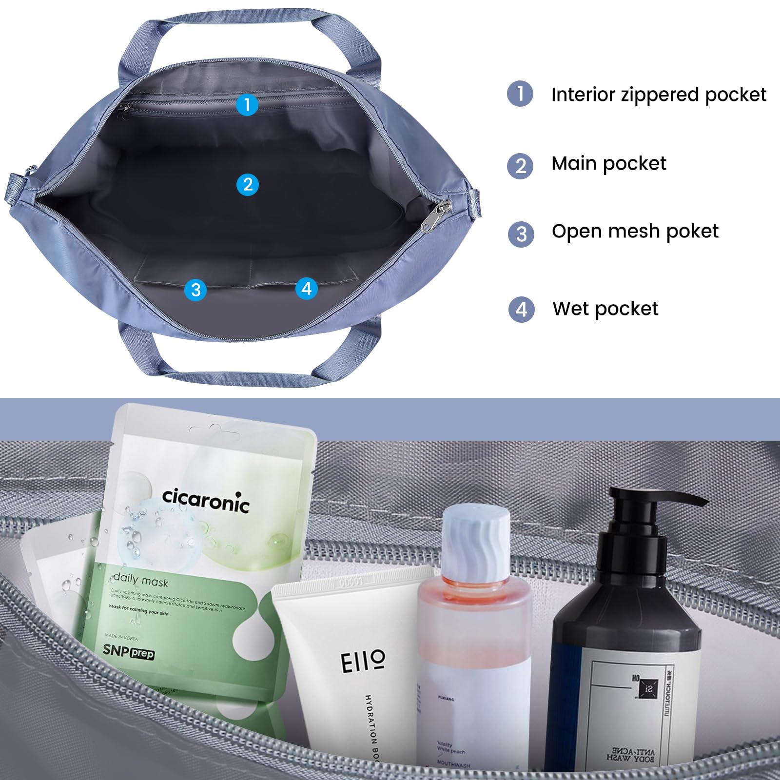 * Funkciók: **bővíthető kialakítás, nedves–száraz elválasztás, bőröndre húzható pánt**