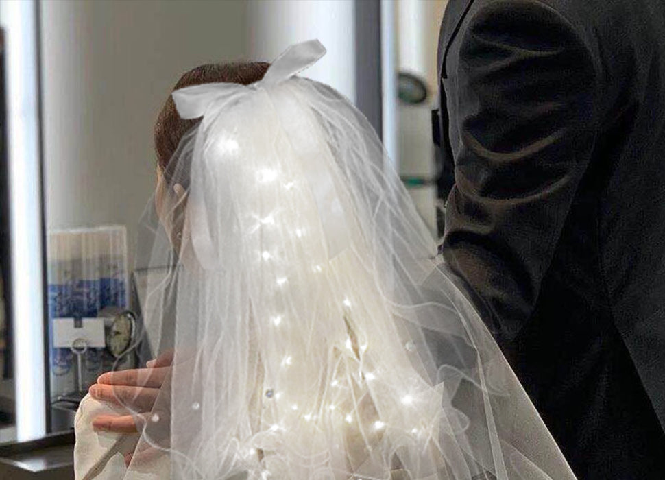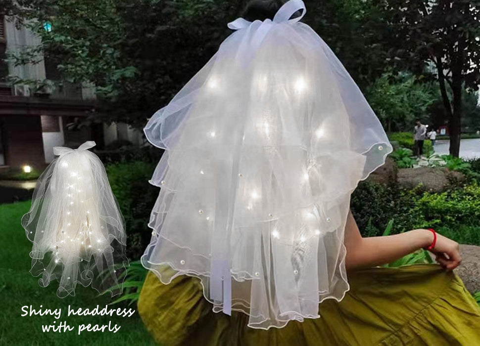 -LED-es Tündér Fejpánt + Esküvői Fátyol Szett – Álomszerű Kiegészítő Ünnepekre